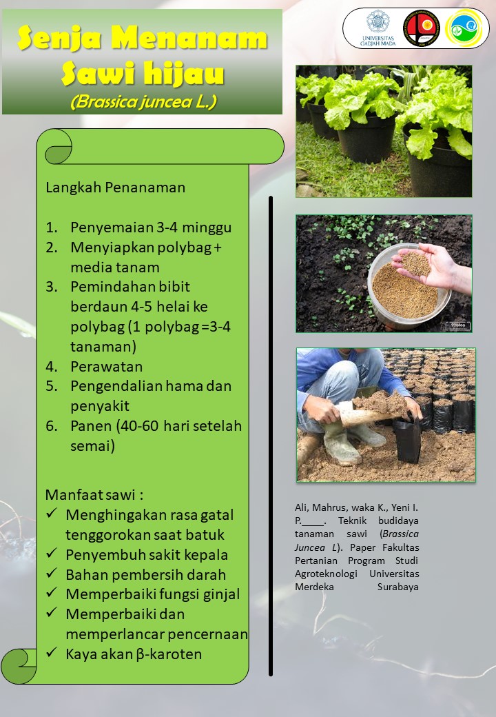 Sosialisasi mengenai program ini sudah dilaksanakan pada tanggal 6 Agustus 2020 di dusun Giyanti 1 dan dusun Bojong. Materi sosialisasi disampaikan di grup Ibu PKK pada pukul 20.00. Materi yang disampaikan berupa poster dengan memberi keterangan mengenai pentingnya menanam sayuran, terutama dengan ditanam dalam pot maupun polybag. Kemudian dilanjutkan dengan sesi diskusi sedikit. Pada proses akhir proker nantinya akan dibagikan berupa benih sawi hijau kepada Ibu PKK, untuk dapat ditanam dan dibudidayakan sebagai kebutuhan rumah tangga.